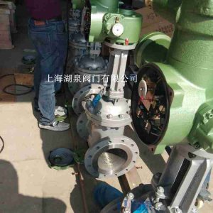 上海湖泉閥門集團有限公司DN800電動流量調節閥接受來自DCS或PLC的DC4-20mA(DC1-5V等)控 制信號來運轉的全電子式執行機構,電動流量調節閥體...